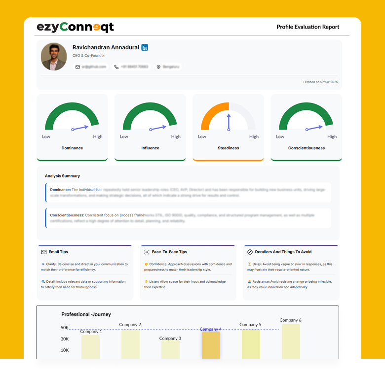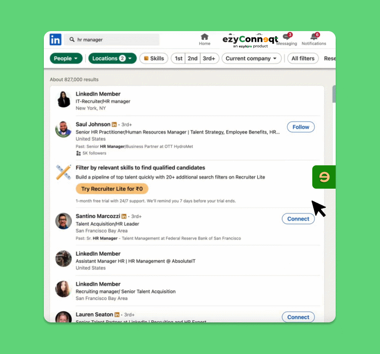 With the ezyConneqt Chrome Extension,you can instantly pull full LinkedIn profiles into your dashboard.