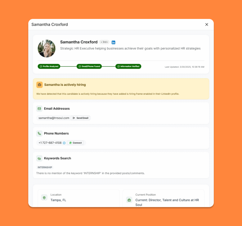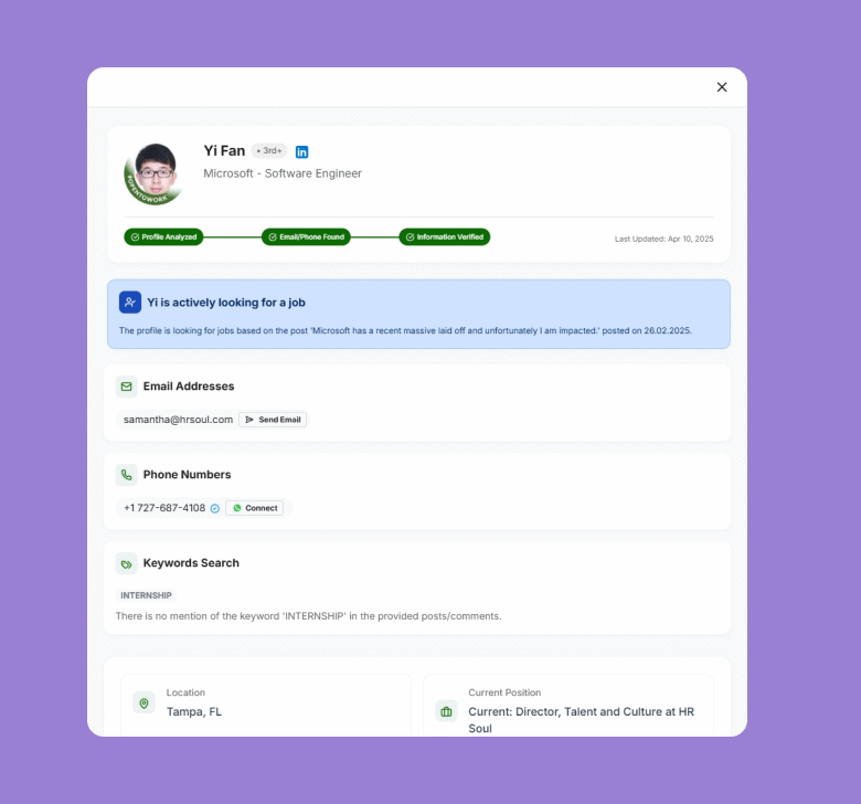 Our AI-powered engine analyzes Linked profiles to surface high-probability leads and deliver deep insights - all in seconds.