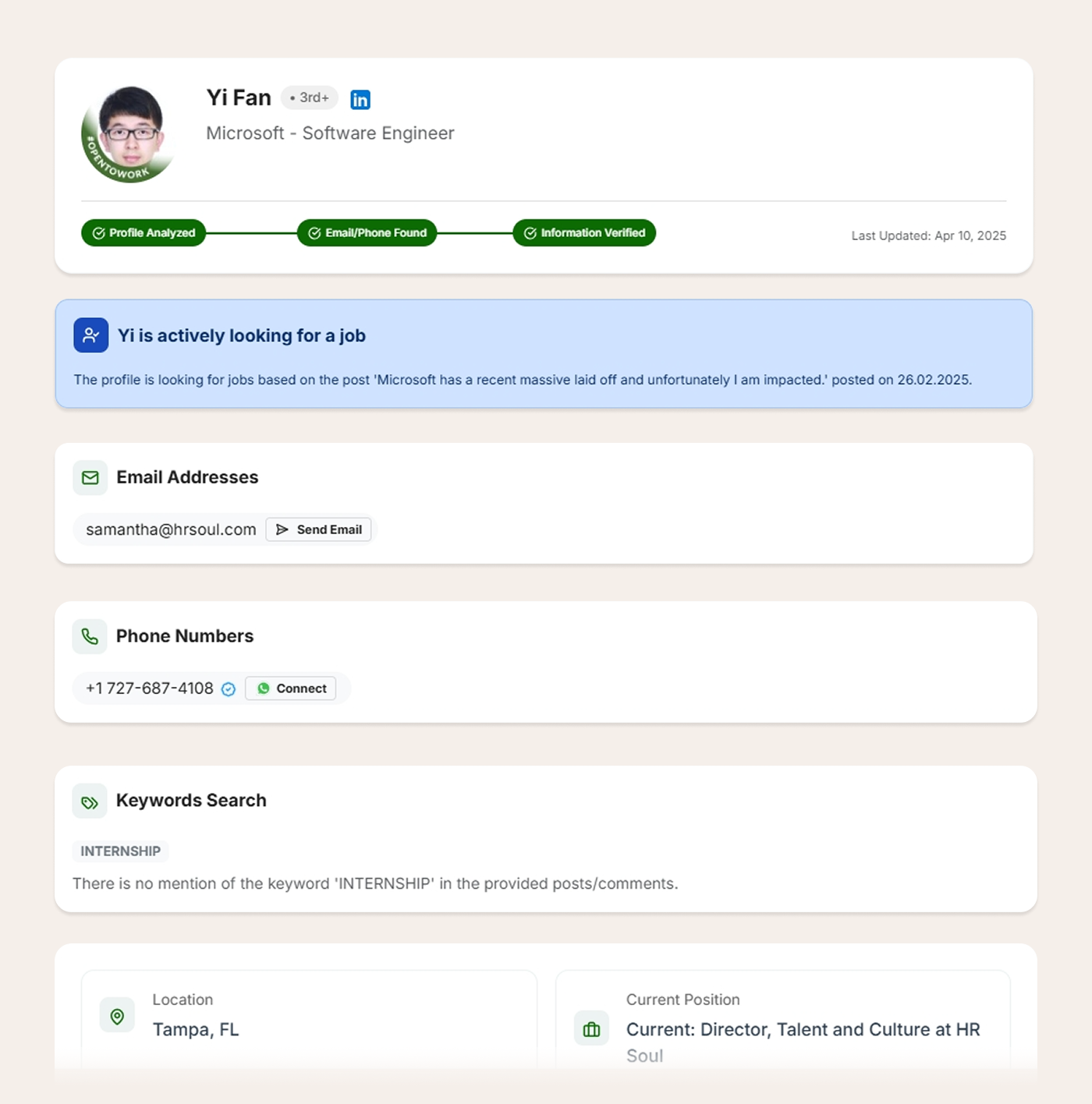 Find verified contacts from LinkedIn, websites, job boards in one click.